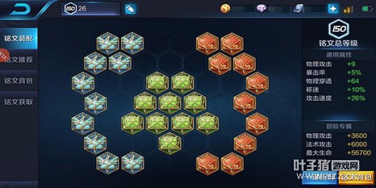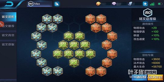 第一套方案小编推荐的铭文是蓝色狩猎X10+绿色鹰眼X10+红色异变X10,也就是所谓的移速攻速百穿,这套铭文在前期提供了100的护甲穿透,可以在前期特别是四级的时候一套打出非常高的伤害。