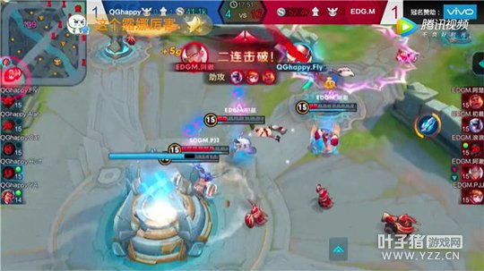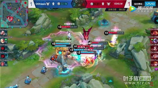 当比赛进入后期时,EDG.M不断地在拆塔,最后直逼水晶,QGhappy一波又一波的击退敌人,但是却奈何双方经济落差太大,EDG.M凭借自身巨大的优势,最终推掉敌方水晶,赢得本场比赛胜利。