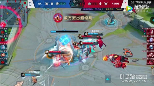 比赛进行至十分钟时,AS仙阁的吕布和扁鹊在中路清理兵线,此时GK的老夫子却选择绕后直接释放大招命中吕布,双方的各路支援也都相继赶来,在中路爆发了一场激烈的团战。吕布在吸收很多伤害后依旧不倒,当敌方各个英雄站位比较集中时,立即释放出大招击飞两人,敌方诸葛亮和马可波罗为躲吕布大招迅速撤退,失去了最佳输出机会,AS仙阁最终团灭对方,打出一波一换五,增加了己方的优势。
