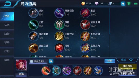 六神装:追击刀锋、抵抗之靴、暗影战斧、泣血之刃、无尽战刃、破军