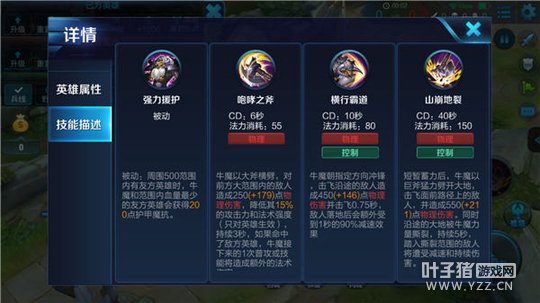 牛魔是王者峡谷中保护能力最强的辅助之一,不仅可以后手保护己方核心输出,同时也可以先手开团吸收伤害。想要玩好牛魔必须掌握技能使用时机,反应速度一定要快.当对手的刺客英雄突进后,牛魔要第一时间使用技能将其控制或击退。