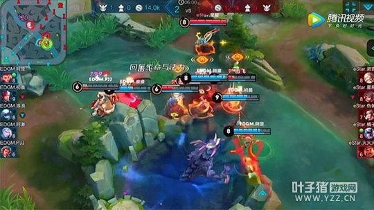 7分25秒,eStar在推掉上路一塔后直接选择开团,EDG.M张飞选择反打,此时韩信与扁鹊已经在赶到侧翼随时准备进场。在敌方后撤过程中,韩信直接利用一技能击飞两人,并成功击杀老夫子。最终EDG.M打出0换4,建立起优势。