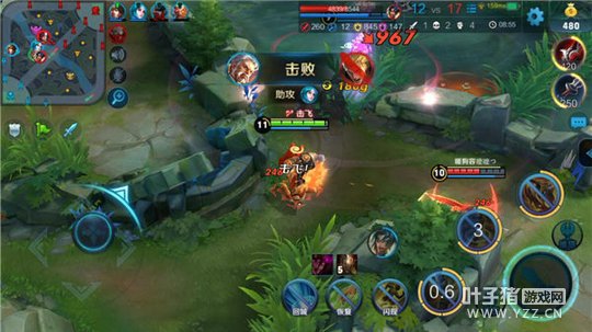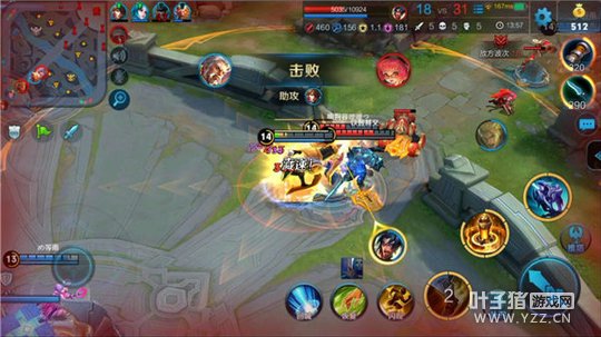 当我方兵线进入到敌方防御塔内时,尽量先攻击防御塔,若是敌人来到黄忠的攻击范围内则先攻击敌方英雄,若是敌方英雄有超过两人被击杀,我方可以立即逼团,以人数的优势能够打出一波完美的团灭。