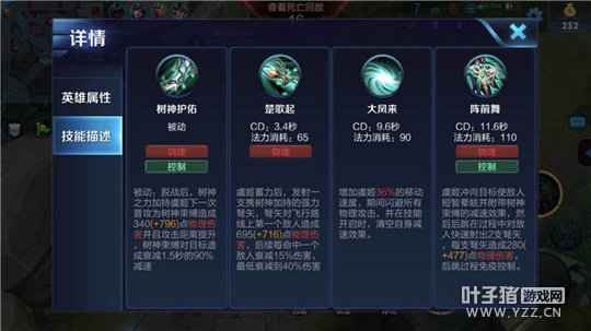 被动技能——树神护佑:被动技能的高额伤害提高了虞姬的战场爆发能力,减速效果使虞姬的留人能力得到加强。