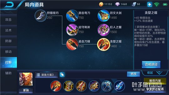 出装:贪婪之噬、疾步之靴、无尽战刃、宗师之力、破甲弓、名刀·司命
