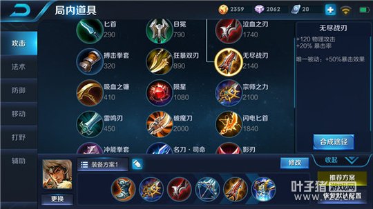 六神装推荐:急速战靴+宗师之力+泣血之刃+破甲弓+无尽战刃+贤者的庇护
