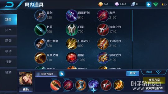 六神装:追击刀锋、末世、急速战靴、纯净苍穹、泣血之刃、闪电匕首