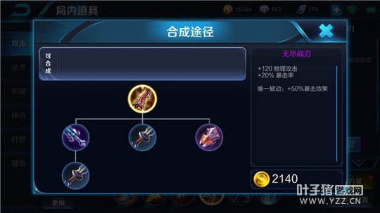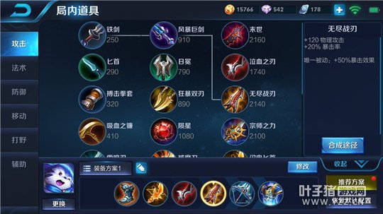 可选择的攻击装备:泣血之刃、制裁之刃、破甲弓、破军