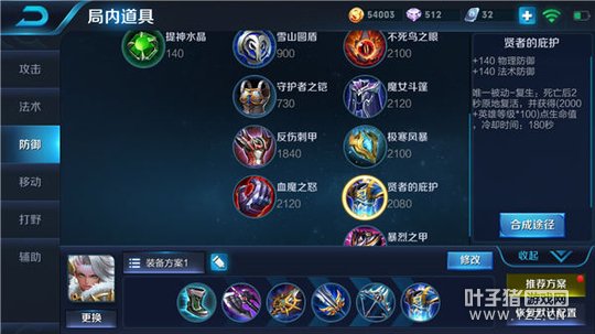 装备推荐二:抵抗之靴+红莲斗篷+冰痕之握+魔女斗篷+不祥征兆+贤者的庇护
