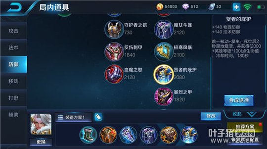 装备推荐一:抵抗之靴+暗影战斧+宗师之力+破军+破甲弓+贤者的庇护
