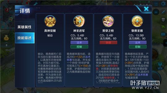 三技能-敬畏圣盾:雅典娜原地举起圣盾,生成一层可抵免伤害与控制效果的护盾,并在短暂延迟后碎裂,对范围内敌人造成伤害与减速效果。