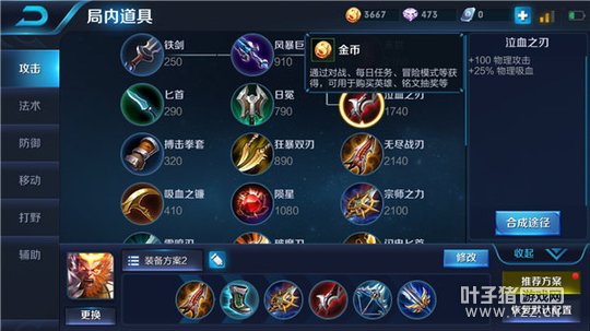 六神装:无尽战刃、抵抗之靴、宗师之力、泣血之刃、破甲弓、破军