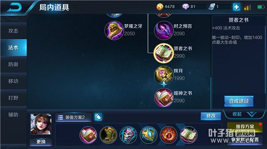 噬神之书提供了较强的吸血能力,配合貂蝉的被动效果更加好,续航能力与对线优势更是得到了加强。影忍之足提供的移动速度能够让貂蝉更好的进行支援,被动也可以减少敌方射手对貂蝉的输出,加强生存能力。痛苦面具提供的法术穿透能够让貂蝉在更短的时间内打出更多伤害,对坦克也可以造成更多伤害。极寒风暴提供了大量冷却缩减,能够让貂蝉更加频繁释放技能加强伤害,被动也能够加强貂蝉在团战当中的生存能力。不死鸟之眼加强的法术防御能够让貂蝉更好的抵抗敌方法师的伤害,被动增强的回复能力也可以提升貂蝉被动的效果。贤者之书提供的大量法术强度可以让貂蝉输出更加强劲,生命值也加强了她的生存能力。