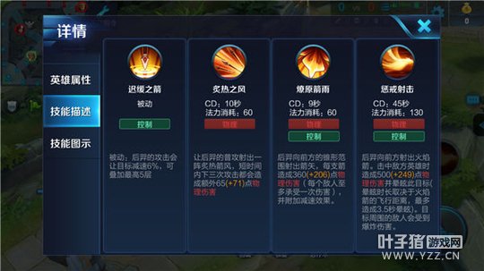解析:控制技能,后羿的每次普攻都能对敌人造成减速,增强了他的粘人能力。该技能在连续输出时能体现出最大的作用,让后羿可以轻松POKE敌人。