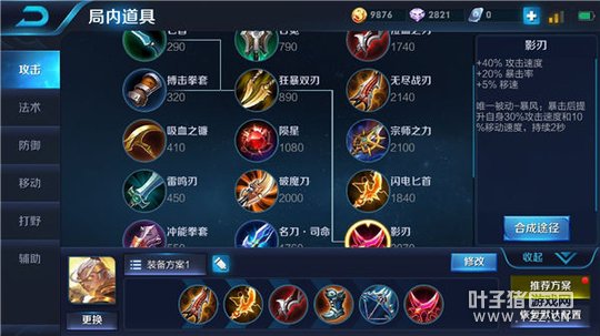 六神装:无尽战刃,闪电匕首,泣血之刃,急速之靴,破甲弓,影刃