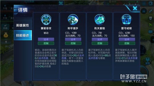 墨子的控制能力非常的强悍,并且自身还拥有位移技能,大招更是可以长时间将敌人晕眩,在团战中也可以利用自己的技能为队友提供最大的便捷,掌握以下要领之后,墨子会变得尤为强大。