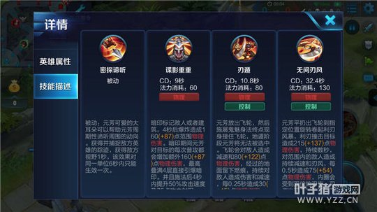 被动-密探谛听:李元芳可谛听周围动向,短暂获取一定范围内敌方英雄的视野,该效果一段时间内只对同一目标生效一次。
