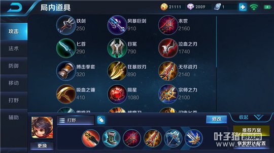 出装推荐:追击刀锋+抵抗之靴+末世+无尽战刃+破甲弓+破军