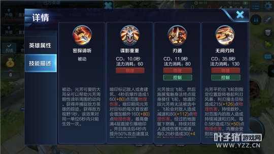 被动-密探谛听:李元芳可感知周围敌方英雄的动向,短时间内获得目标视野,该效果在一定时间内只能对同一单位生成一次。