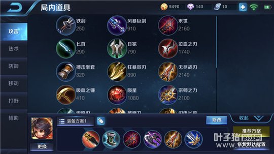 六神装:追击刀锋、抵抗之靴、末世、暗影战斧、无尽战刃、破军