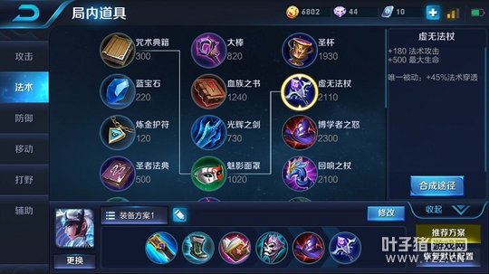 根据英雄的技能推荐以下出装:符文大剑、抵抗之靴、噬神之书、痛苦面具、博学者之怒、虚无法杖
