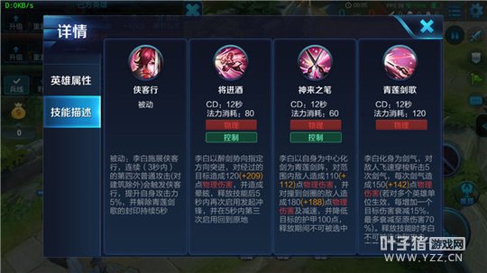 分析:李白化身剑气,持续对范围内的敌人造成高额的伤害,三技能释放期间李白不可被选中和攻击。三技能是李白爆发最高的技能,平时都是处于被限制状态,只有触发被动技能以后,才能解除三技能的限制,三技能不仅输出爆炸,在释放的时候李白还会处于不可被选中状态,凭借着三技能李白可以极限反杀敌人。