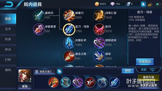 破甲弓:刺客追求一击必杀,而如果敌人出了防御装之后李白就很难将敌人秒杀,破甲弓则是提供了高额的物理护甲穿透,让敌人的防御装也抵挡不住李白的输出。
