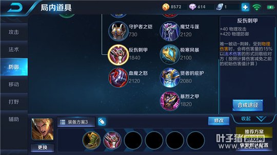 反伤刺甲可以为亚瑟增加大量的物理防御,同时还能够为亚瑟增加一定量的物理攻击,被动效果可以让亚瑟受到物理伤害之后返还一定百分比的法术伤害给予敌人,亚瑟拥有了反伤刺甲之后,自身的坦度以及与物理英雄对线的能力会直线的上升,因为前期敌人的出装也不是很多,所以造成的伤害也不是很高,亚瑟拥有反伤刺甲能够将自身在前期的防御能力大幅度提高,即便在前期团战时,亚瑟也可以帮助队友抗下大量的伤害。