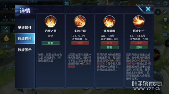 被动-迟缓之箭:后羿的攻击能使目标受到减速效果,该效果可叠加但有上限。