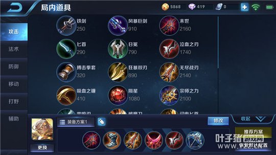 六神装:末世、急速战靴、无尽战刃、影刃、泣血之刃、破甲弓
