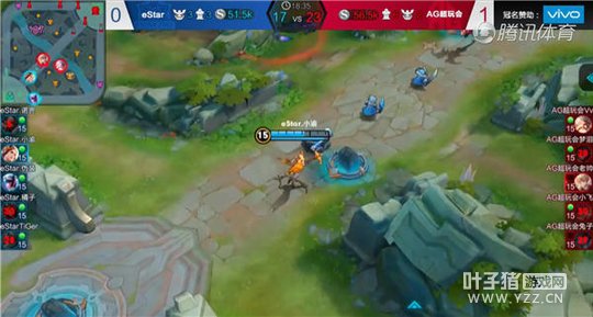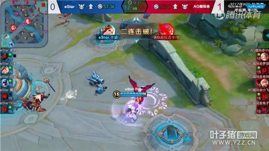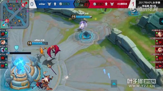 2017年KPL秋季赛eStar对战AG超玩会的比赛中,AG超玩会将兵线带入到eStar的水晶处,而此时eStar因为之前的战斗中被击杀了三名队友,所以剩下的露娜以及姜子牙很难守住水晶,在千钧一发之际,eStar虞姬从泉水中复活,并立即来到敌方李元芳面前用自己的普通攻击结合被动技能将其减速,并用普通攻击将李元芳击杀,随后花木兰看到虞姬之后想用自己重剑形态下的二技能控住虞姬,但是被虞姬用二技能躲过,随后虞姬释放大招将花木兰打成残血,并用自己的一技能将其收割,而后虞姬和露娜配合将进入到己方水晶处的兵线清理掉,成功的守住了己方的水晶。