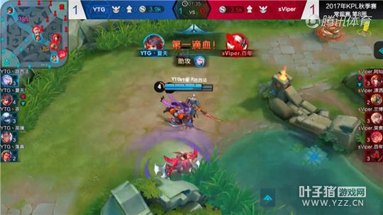 2017年KPL秋季赛YTG与sViper的比赛中,YTG李元芳与铠在上路与敌方的曹操相遇,此时曹操释放自己的一技能攻击了李元芳,而李元芳在危机之中利用自己的二技能迅速躲过了曹操的攻击,随后利用自己的普通攻击配合己方的铠对曹操进行输出,而后曹操对准李元芳释放二技能将其减速,想要强行击杀李元芳,但是李元芳在看到曹操将自己减速之后,立刻释放自己的一技能命中曹操,并用普通攻击将曹操身上的一技能引爆,随后利用大招将曹操打成残血,并用自己的普通攻击将曹操快速击杀,拿到了第一滴血。