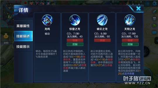 这个技能是一个长距离的位移和伤害技能,命中敌人后还能将敌人击飞,并让赵云的普攻和技能对命中的敌人造成额外伤害。位移距离远是赵云开团的主要手段,当然用来逃跑也是极好的技能。