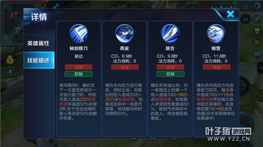 每间隔五秒,橘右京的下一次普攻都会被加强,对前方敌人造成物理伤害并减速,处于攻击边缘的敌人将会受到额外的物理伤害。此技能能够在无形中增加橘右京的收割能力,配合其他技能使用将会收货可观的效益。
