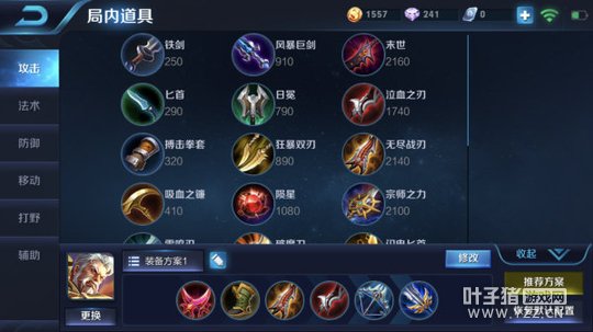 破甲弓提供的物理穿透加强黄忠打击敌方前排坦克的能力,破军则强化后期的输出并提升黄忠收割残血的能力。