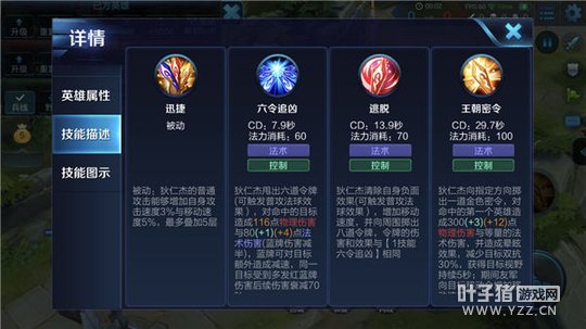 被动-迅捷:狄仁杰的普通攻击会不断为其叠加攻击速度与移动速度,该效果可多次叠加(有上限)。