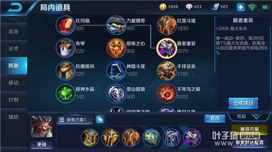 六神装推荐:疾步之靴+近卫荣耀+红莲斗篷+极寒风暴+魔女斗篷+霸者重装