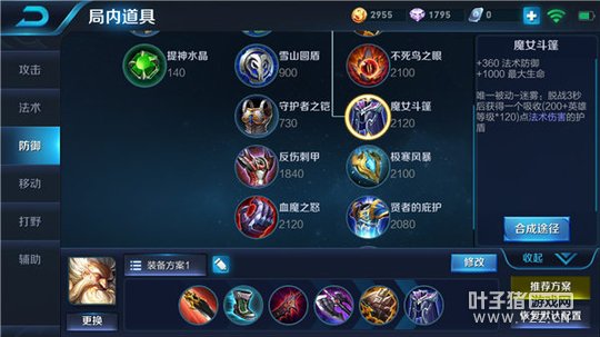 2、老夫子在防御装方面的选择要顾及生命值和抗性两个方面,这样才不容易被集火秒杀。例如不祥征兆、魔女斗篷这样血量加成和抗性加成都比较高的装备,而反伤刺甲与极寒风暴这样没有血量加成的装备不太适合老夫子。