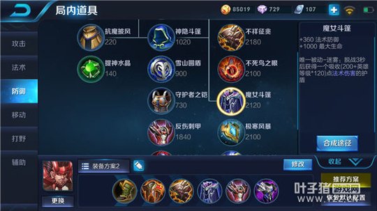 出装推荐:影忍之足、红莲斗篷、不祥征兆、魔女斗篷、反伤刺甲、霸者重装