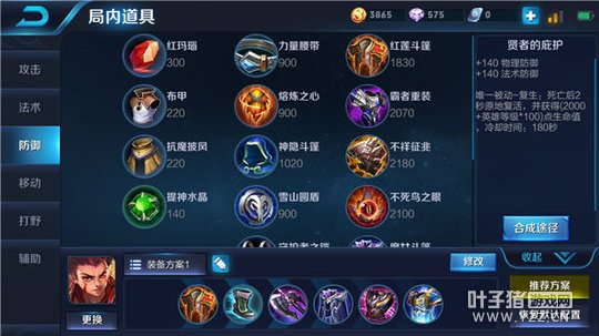 出装:红莲斗篷+抵抗之靴+暗影战斧+魔女斗篷+暴烈之甲+贤者的庇护