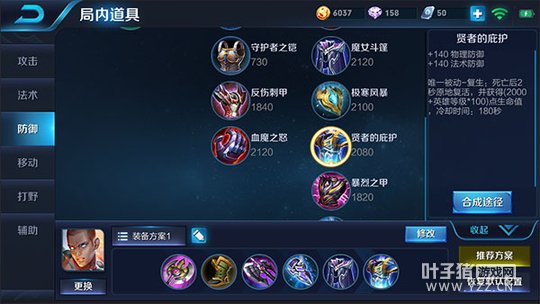 六神装:巨人之握、抵抗之靴、暗影战斧、冰痕之握、魔女斗篷、贤者的庇护