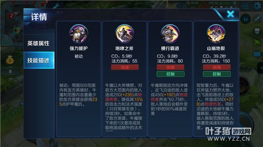 解析:被动技能可以给一定范围内血量最低的友方英雄提供护甲和魔抗,是一个十分实用的保人技能。被动技能不仅让牛魔防御力更加强悍,还可以保护输出安全撤离战场。