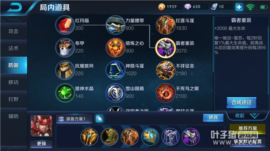六神装推荐:近卫荣耀+影忍之足+红莲斗篷+极寒风暴+魔女斗篷+霸者重装