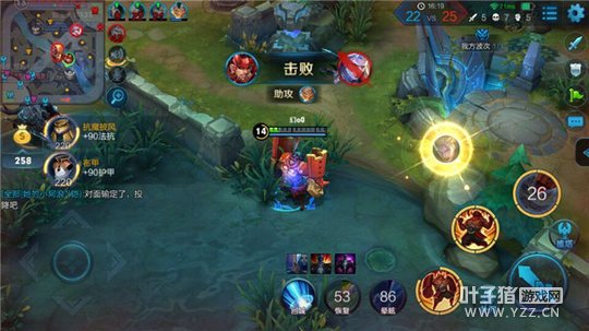 廉颇在下路辅助射手时,可凭借自身强大的扛伤能力为射手分担一定的伤害,但由于本身的输出并不高,所以在前期对线时,尽量选择保护为主,待到队友前来支援时,再选择上前进攻,利用一技能与二技能的控制效果留下对手,并配合队友的输出将对方击杀。