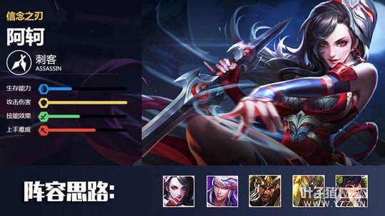 阿轲是一个集爆发与收割于一体的刺客,刷新技能的机制让她堪称王者峡谷第一收割英雄。使用阿轲时需要熟练掌握她的大招隐身时间,另外需要注意触发被动,从背后攻击敌方英雄。