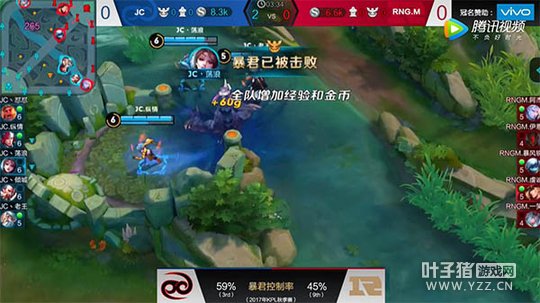 3分30秒,在JC成功利用等级优势入侵野区,击杀掉RNG.M多人之后,趁对手处在减员情况,JC.纵情配合队友直接选择打掉暴君,帮助队伍快速提升经济,让前中期的经济优势更加巨大。