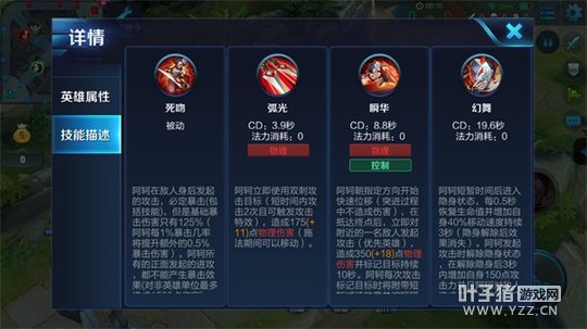 技能解析:阿轲在敌人背后输出的时候百分百触发暴击效果,这个技能赋予了阿轲可以通过走位增加伤害的特点,配合大招和二技能两段位移效果可以轻松绕到敌人身后。不过阿轲的初始暴击伤害不高,所以出装上比较追求暴击效果的加成。