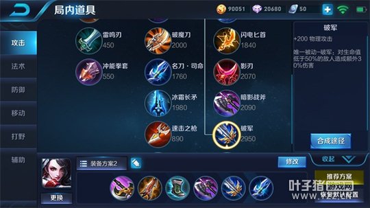 出装推荐:巡守利斧、无尽战刃、抵抗之靴、暗影战斧、破军、名刀·司命