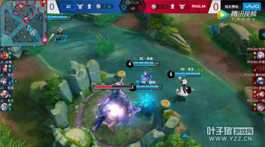 比赛进行到3分钟左右的时候,蓝色方在人数较齐的情况下选择了去反蓝,这时候韩信在马可波罗使用二技能撤退后,先是利用二技能拉近和马可波罗的距离,接着释放一技能将其成功挑飞,然后姜子牙马上跟进释放技能将其减速,最后貂蝉在赶到后释放二技能+一技能成功将其击杀,拿下了一血。这时候蓝色方占据了明显的优势,红色方不甘心依旧想拿下蓝BUFF,达摩在使用一技能突进后,貂蝉立马开大,在阵法内快速释放一、二技能造成减速和高额的伤害,姜子牙也用大招成功命中达摩,接着达摩又受到了姜子牙和曹操的多重减速,即使是释放大招也无法挽救,最后被击杀。在获得优势后,曹操和队友果断攻打暴君,将优势进一步扩大。