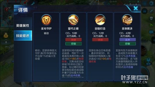 英雄解析:作为一个战士英雄,主要任务就是在前排扛伤,或者分割战场,阻止敌方后排进团输出,又肉又粘人的战士英雄是任何输出英雄也不想碰到的。一旦贴身黏住后排英雄,亚瑟完全可以把全部伤害作用在后排身上,压低血量,使其不敢再上前输出。